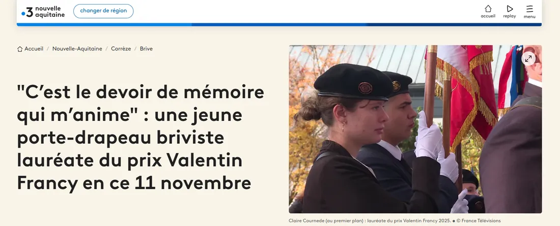 Pour la troisième année, la remise du Prix Valentin Francy a marqué les cérémonies commémoratives du 11 novembre 2025, à Brive.